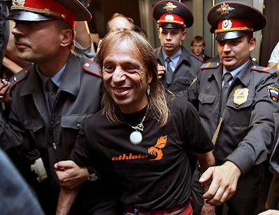 Alain Robert climbed to the top of the 799-feet-high Federation office building, Europe's tallest building, in less than a half-hour using a ladder. Police did not try to prevent him from ascending the building or attempt to pursue him, but detained him afterward.
