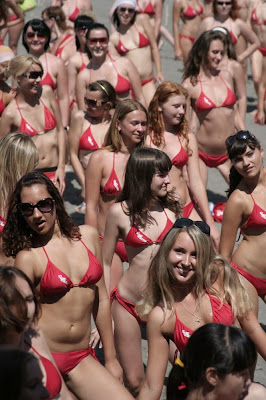 Last September 1,010 women lined up to form the word Cosmo on Bondi Beach, creating a new category in Guinness World Records. In this year's event in Sochi, organizers lined women up to form the website address 'Cosmo.ru'.